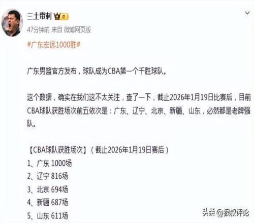 2026年1月19日,广东宏远成为CBA历史上第一个拿到1000场胜利的俱乐部!这不仅是一个数字,更是一代代宏远人用无数汗水与热血凝聚而成的一段王朝史诗!