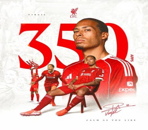 此役客场对阵马赛,范戴克首发出战,这位荷兰中卫迎来利物浦生涯各项赛事第350次出场。